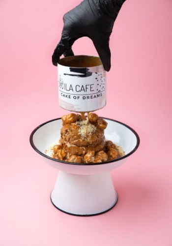 (523 سعرة حرارية)كيك الفانيلا مع قطع الكنافه و تضاف إليها قطع بوب كورن المغمسه بالكراميل مع الايس كريم ويضاف إليها صوص اللوتس اللذيذ.
