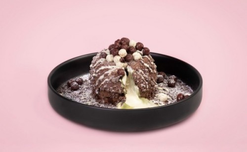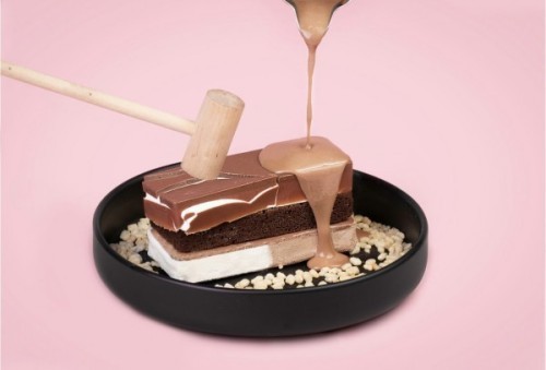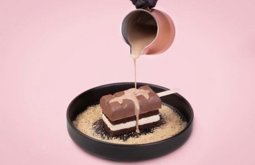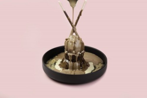 (470 سعرة حرارية)طبقات من كيك براوني مع قطع الكرسبى رايزو وشوكلت الويفر يتوسطها ايس كريم الفانيليا مغطاه بشوكلت الحليب والبيضاء البلجيكي .